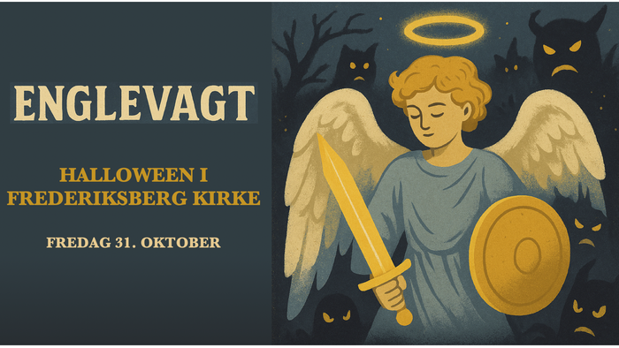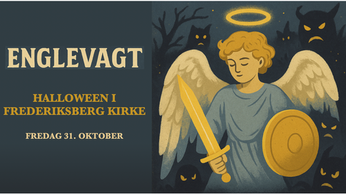 I den mørke halloweenaften står hvide engle vagt i Frederiksberg Kirke.