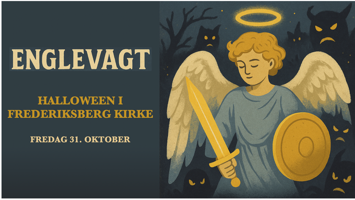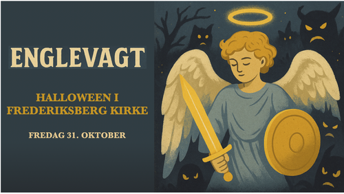I den mørke halloweenaften står hvide engle vagt i Frederiksberg Kirke.