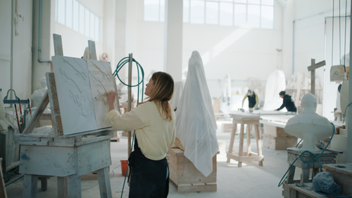 Kunstværket er udført i gasbeton og marmor og er en donation fra Ny Carlsbergfondet.