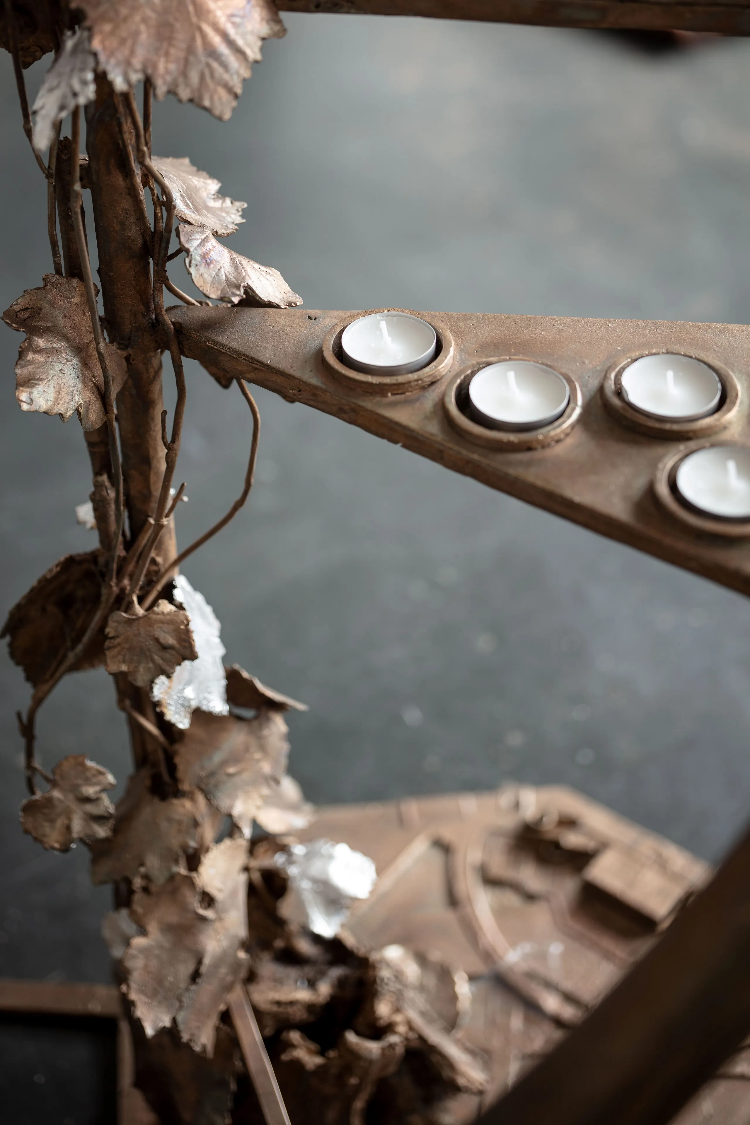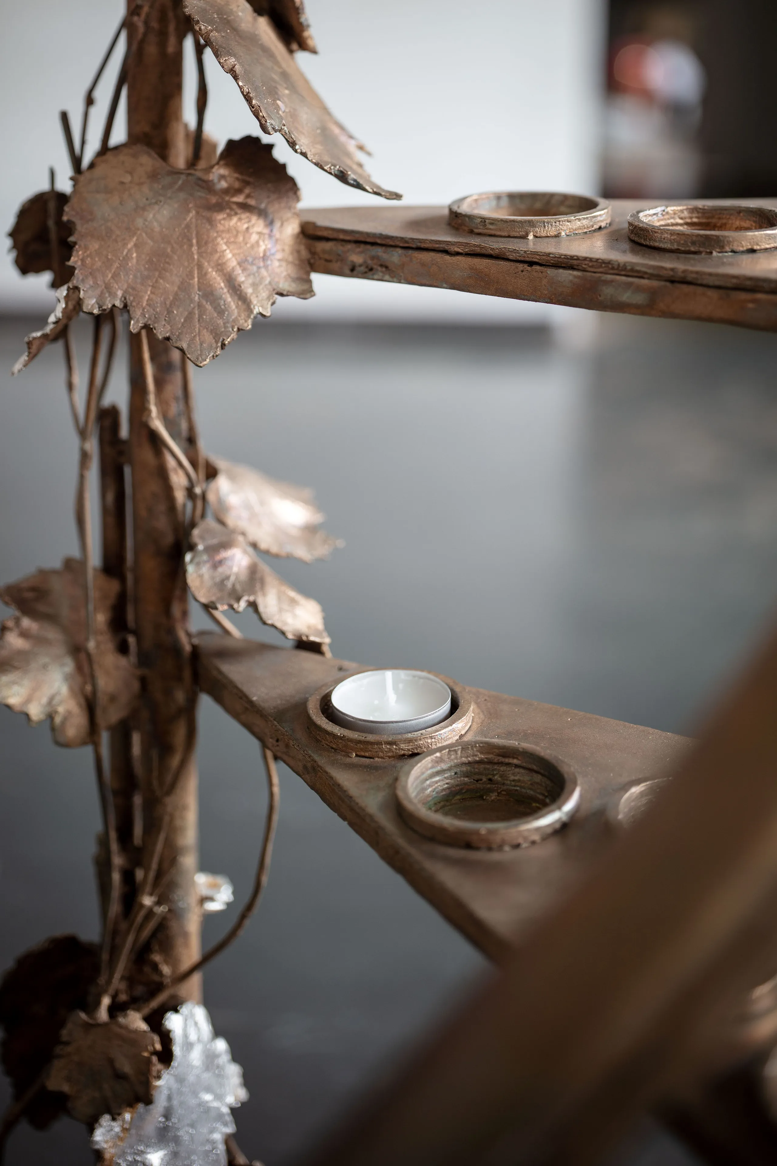 Skulpturen er lavet specifikt til Frederiksberg kirke, og den indoptager i skulpturel form elementer fra kirkens arkitektur og grundplan, sammenflettet med et opadgroende vinbladsmotiv, der stille peger på nadveren, Jesus som livets træ og den lovede Messias, løftet fra det gamle testamente “et rodskud fra Isajs stub, et nyt skud på Davids stamtræ”.